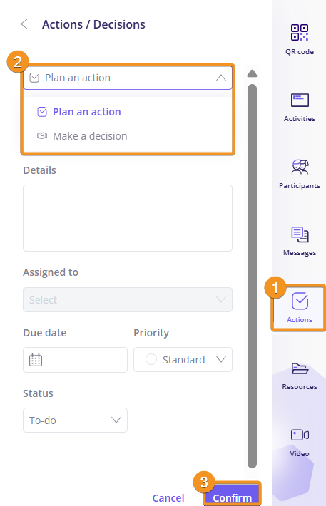 During a Board or Speedboat activity, it is possible to plan an action or make a decision directly from an idea sent by you or one of your participants.