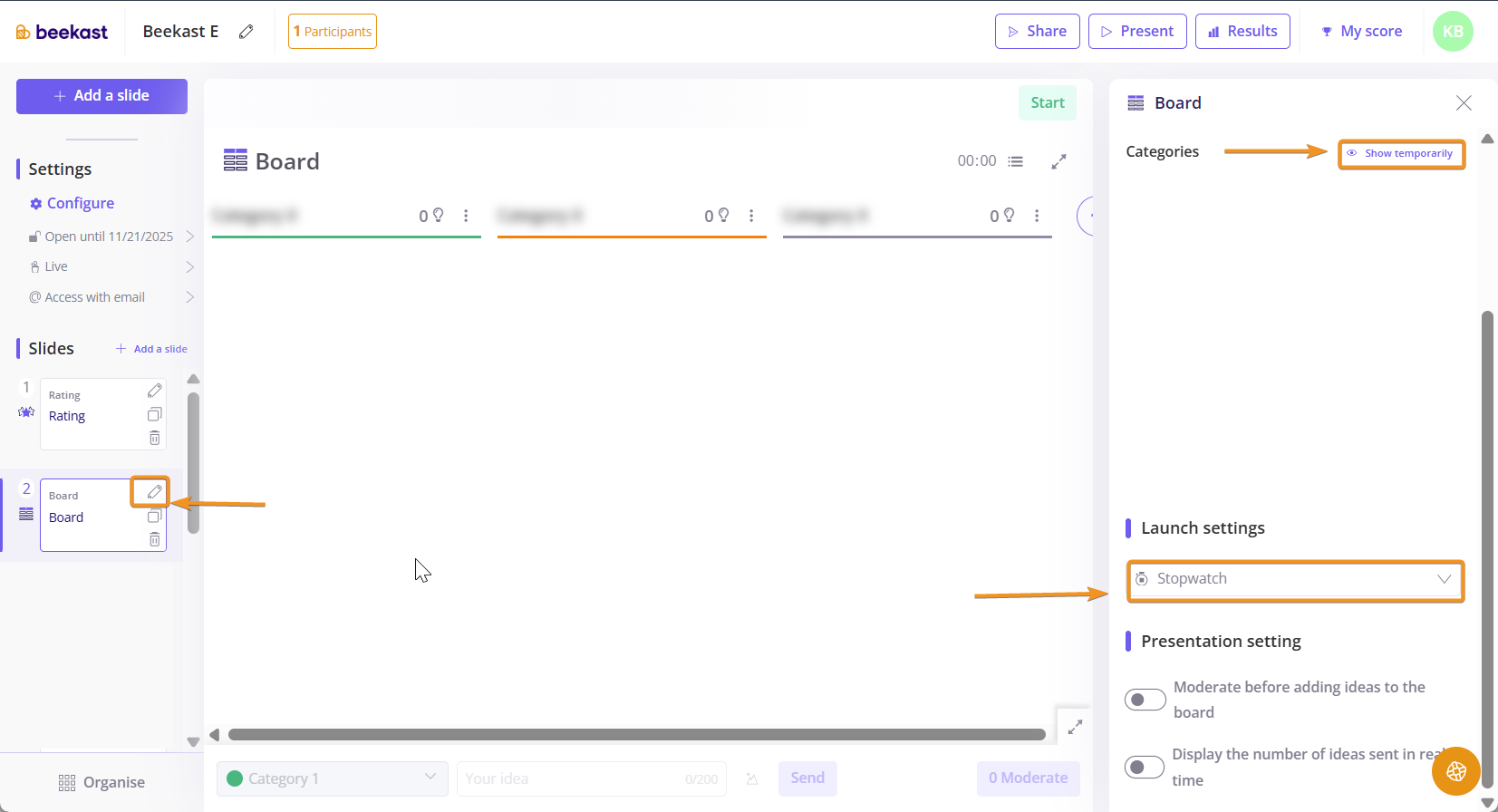 - Click on the small pencil icon on your activity slide to modify the launch settings. This will reopen the editing panel.
