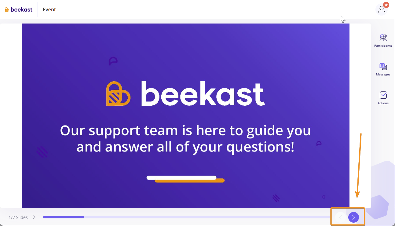 You can freely navigate through the session and scroll through the slides at your own pace as long as the session remains open. You can view content and participate in activities whenever you choose. Navigation is available using the directional arrows at the bottom right of the screen.