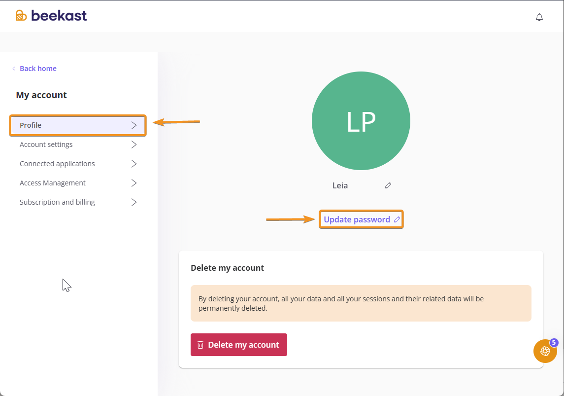 Change or reset my Beekast password