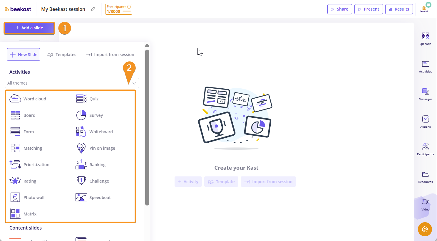 1. Click “Add a slide” at the top left of your session.