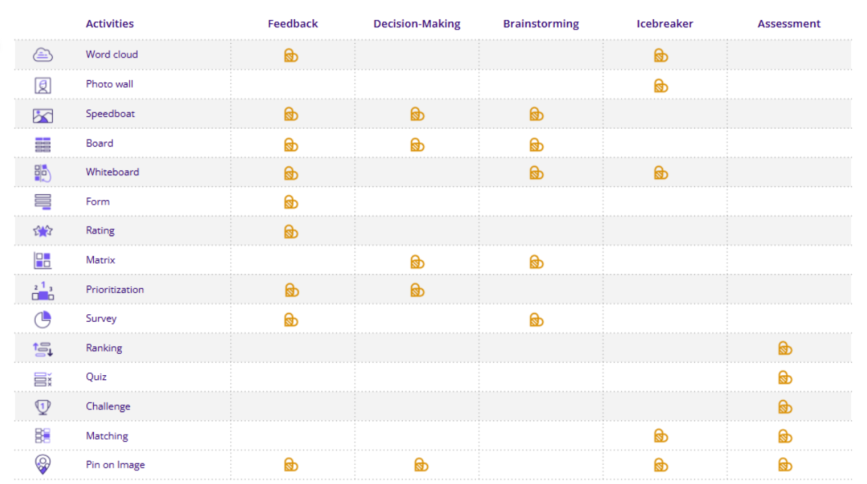 These activities allow you to collect your audience’s opinions and visualize trends quickly.