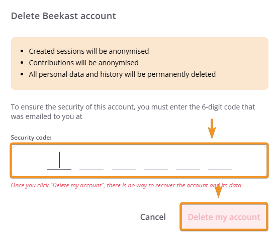 8. Click on Delete my account.