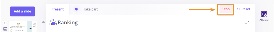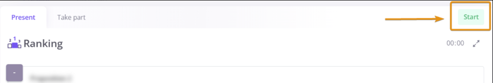 Once your activity is done, click on the green button Start at the top right of the slide to open it to your participants. This makes the activity accessible, and your participants can start answering it.