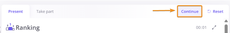 After a sequence of comments or explanations on the activity, do you want to open it again? Click on the grey Continue button on the top right of your slide