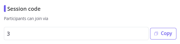 The session code is a 6-digit code that your participants can enter in the purple banner on the