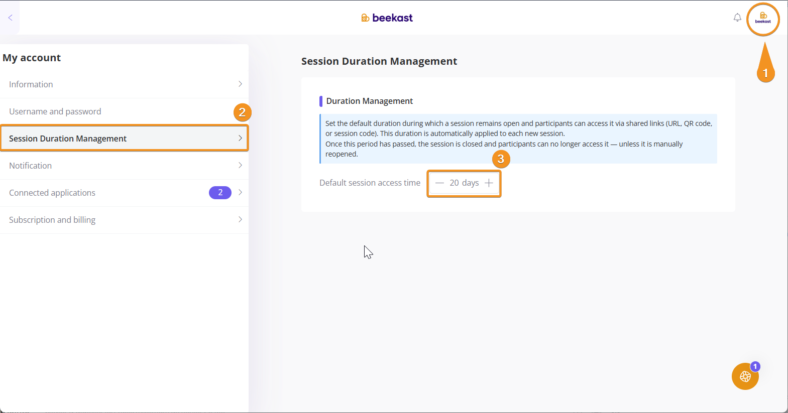 2 - Customising the duration: You can adjust the default duration of all your sessions. Simply go to your session Share settings to choose the duration that suits you.