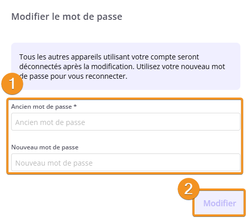 III. Remplissez les champs “Ancien mot de passe” et “Nouveau mot de passe”. Celui-ci en respectant les conditions demandées.