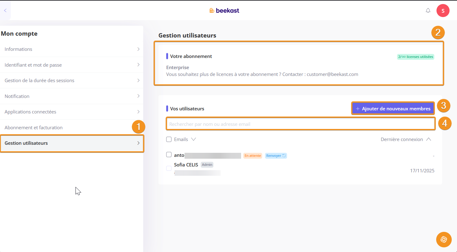 2. La personne possède un compte Beekast :