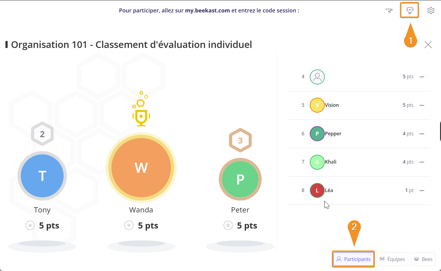 - l’Évaluation pour que puissent gagner des points en classant les réponses dans le bon ordre