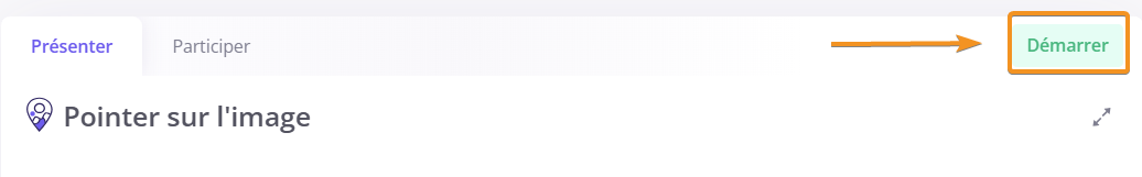 En tant que propriétaire/animateur d'une session, vous pouvez choisir de participer à l’activité en cliquant sur l'onglet Participer en haut de la slide d'activité une fois celle-ci lancée.