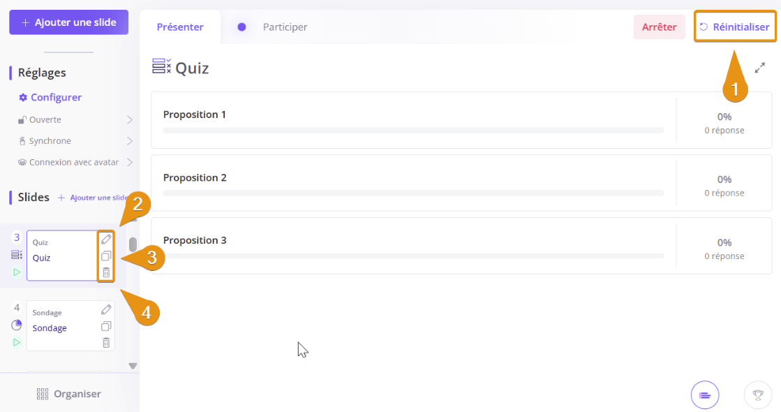 - Affichez les résultats sous forme de pourcentages, de histogramme, ou ajoutez une explication à la bonne réponse.
