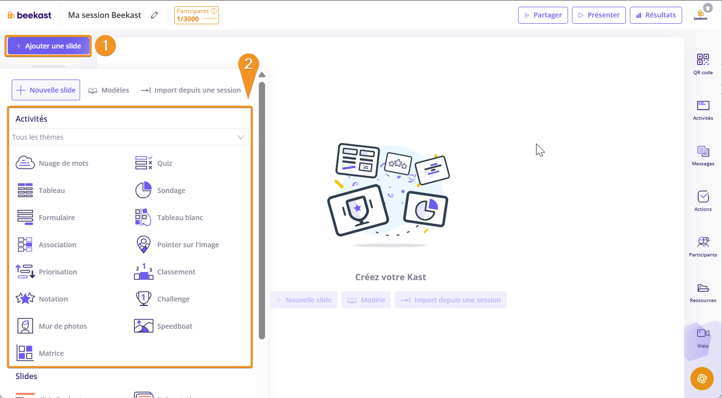 1. Dans votre session Beekast, cliquez sur Ajouter une slide en haut à gauche.