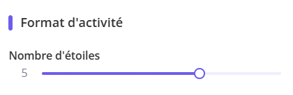 Lorsque vous choisissez l'activité "Notation", l'interface s'adapte instantanément : un panneau d'édition dédié apparaît à droite de votre écran, vous permettant de personnaliser votre activité. Simultanément, le système sauvegarde automatiquement votre activité avec le même nom de l'activité (dans ce cas, Notation) nouvellement créée et l'intègre à votre présentation, visible sous forme de slide dans la barre de navigation à gauche.