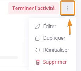 1. Réinitialiser : il est possible de réinitialiser une activité pour effacer les données de participation et la remettre à zéro.