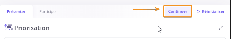 Après une séquence de commentaires ou explications sur l'activité, vous souhaitez l'ouvrir à nouveau ? Cliquez sur le bouton Continuer en haut à droite de votre slide.
