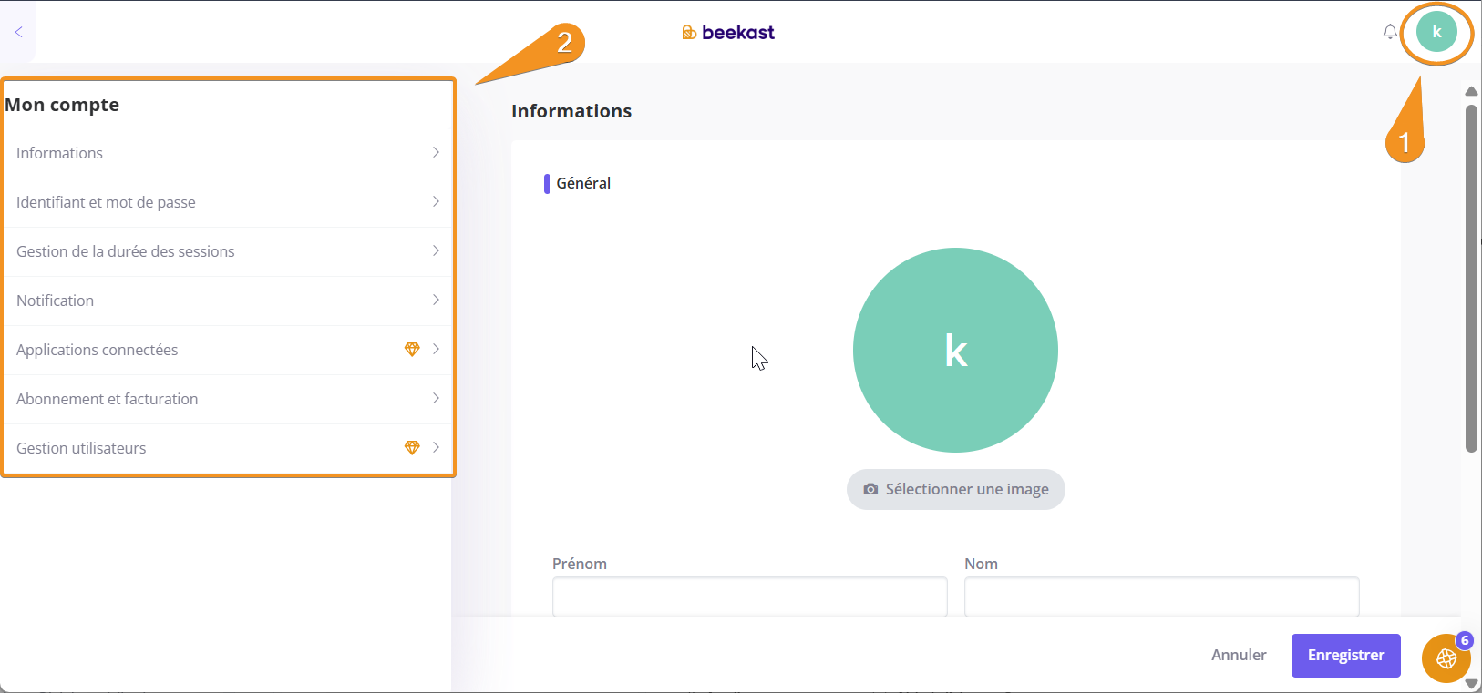 Pour accéder à votre espace “Mon Compte” depuis l'application Beekast :