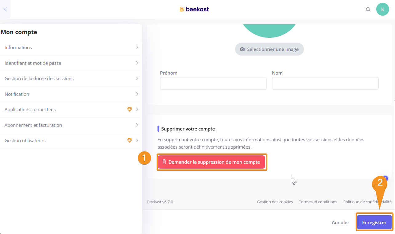 Votre compte Beekast sera alors supprimé définitivement !
